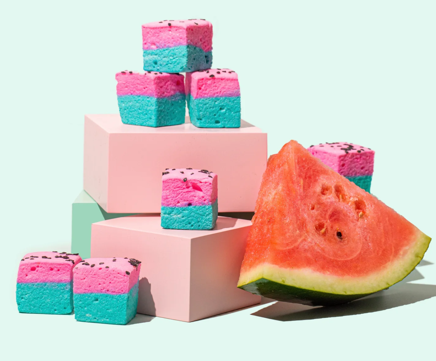 Decadent marshmallows by the Marshmallow club, made in the Blue Mountains. They have lots of intriguing flavours like watermelon (pictured), Maple Latte, and London Fog.
