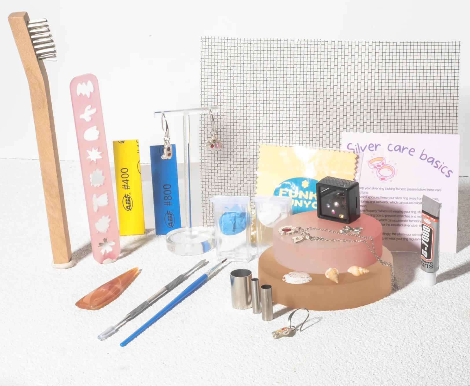 DIY silver pendant kit, or just grab some of the Art clay silver by itself. (It's a moldable metal clay made of fine silver powder, water, and binder that can be shaped like clay and fired to produce (I'm told) 99.9% pure silver.)