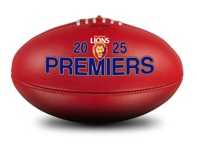 A sporty kid probably wants merch from their favourite team, like this Lions Premiers ball, since Brisbane won everything this year.