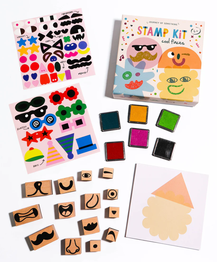 Cool Faces Stamp Kit. "From sunglasses, moustaches, silly hats, big mouths, tiny noses, the possibilities are endless. What is the silliest face you can make?"